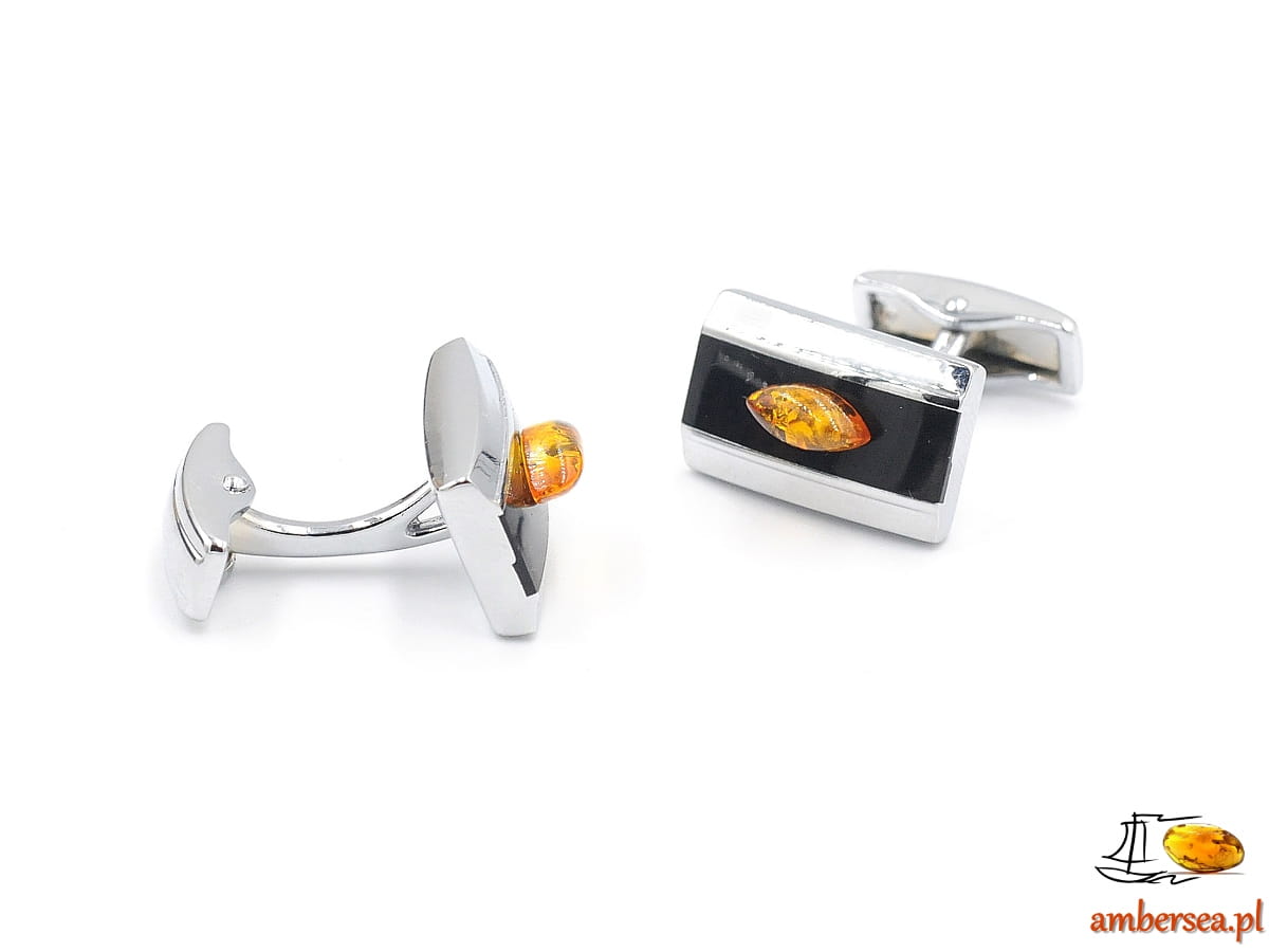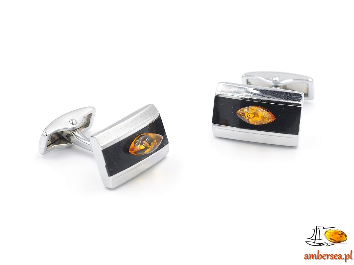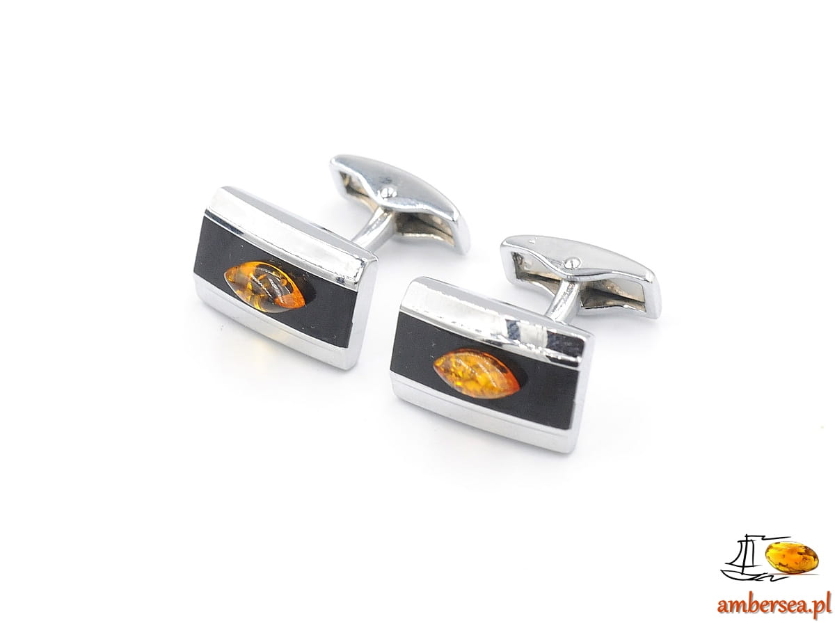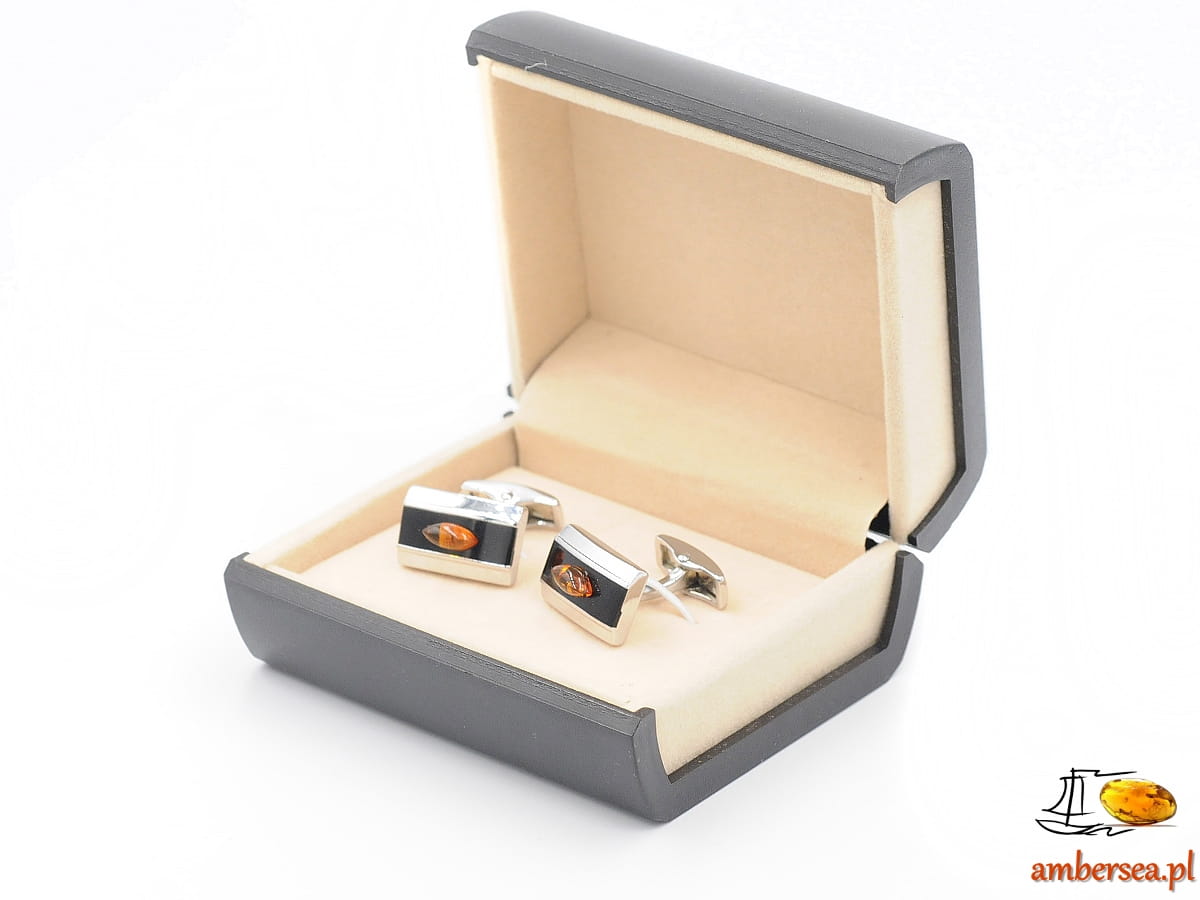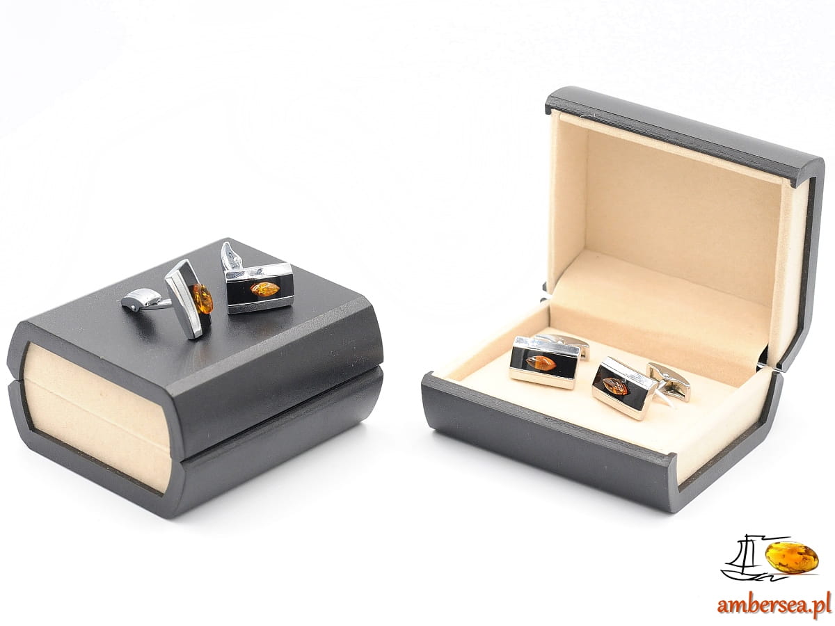 Spinki do mankietów z Bursztynem +Certyfikat srebrne czarne bursztyn łezka