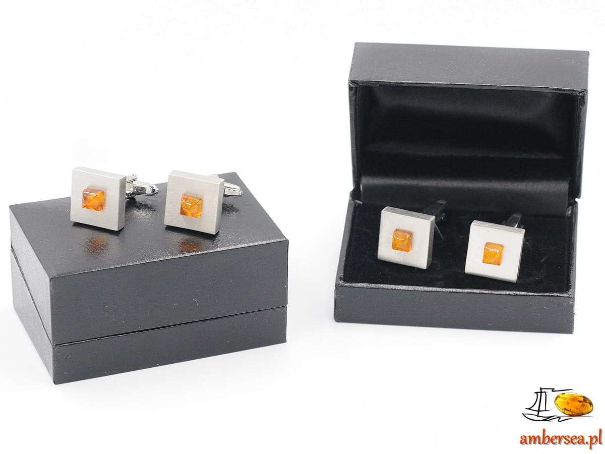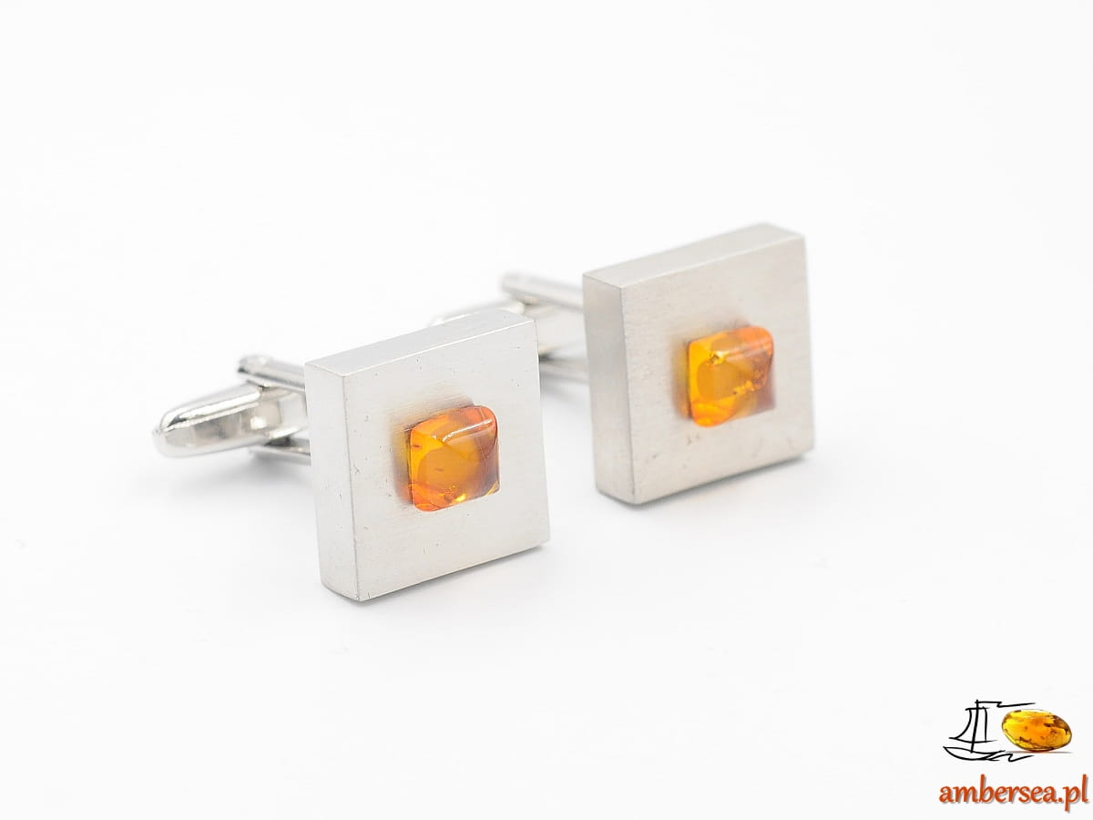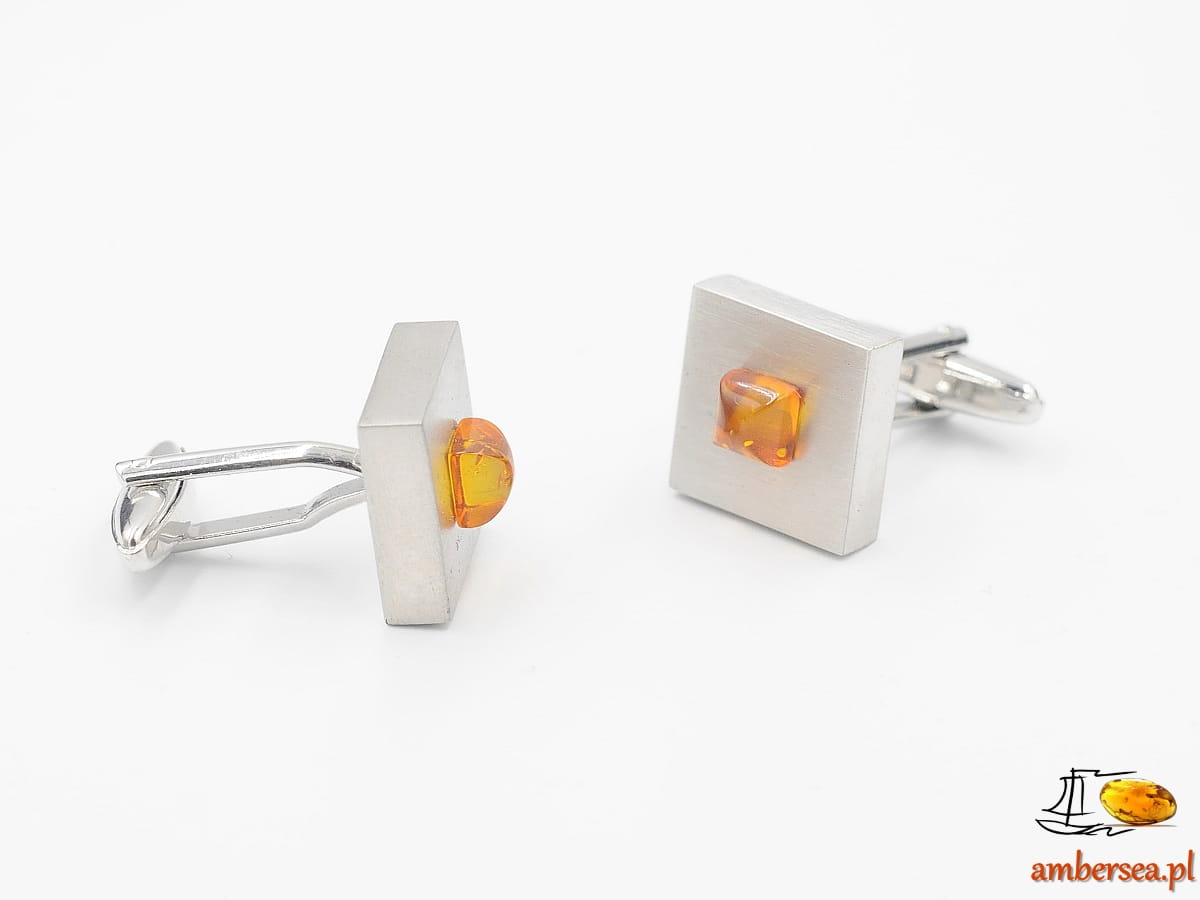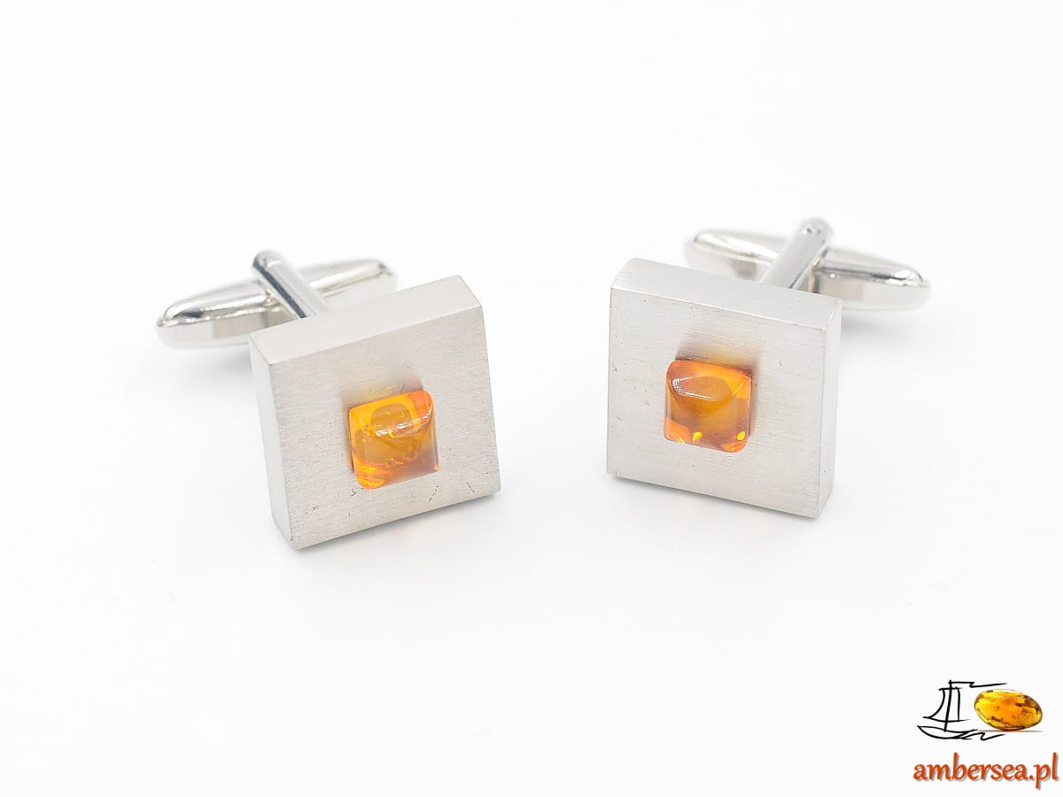 Spinki do mankietów z Bursztynem +Certyfikat srebrne kwardat