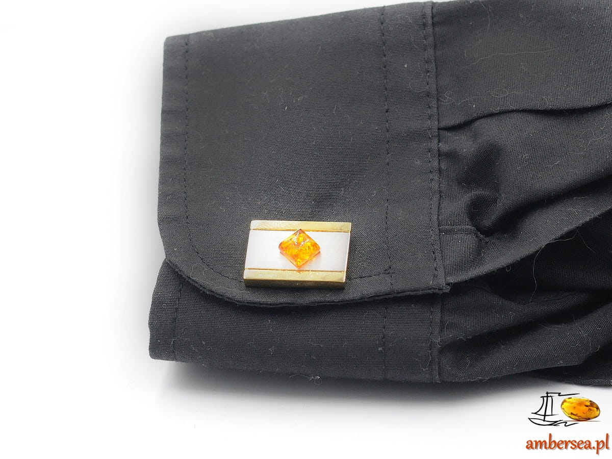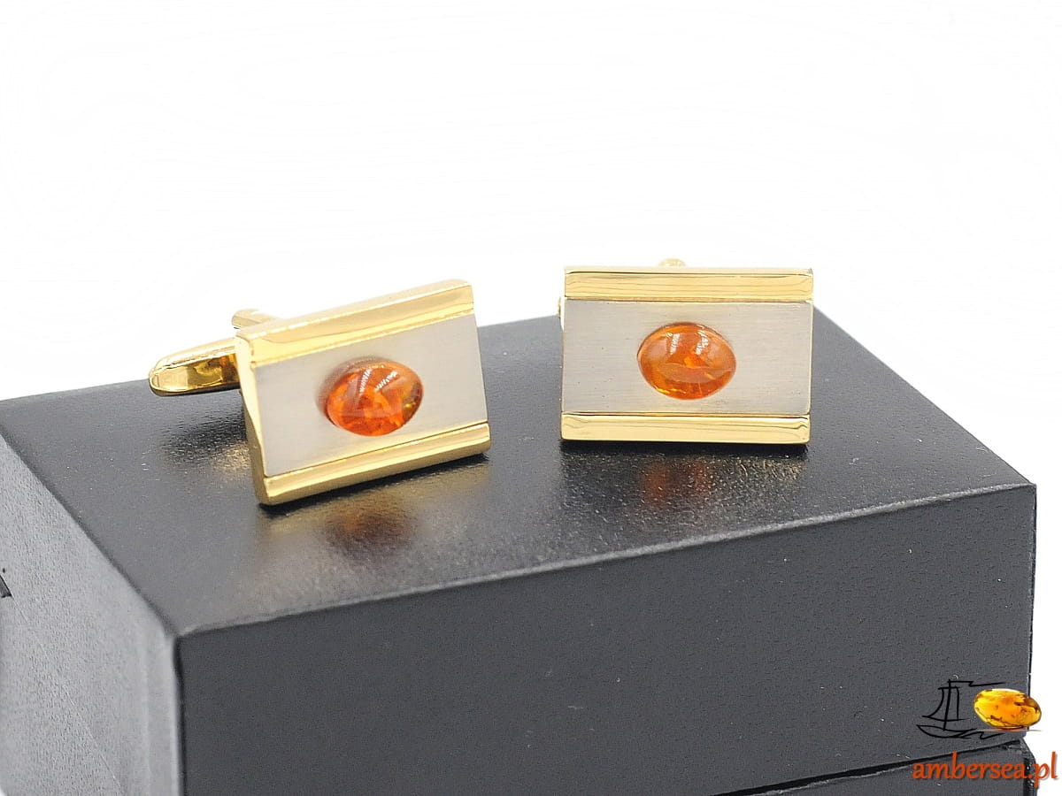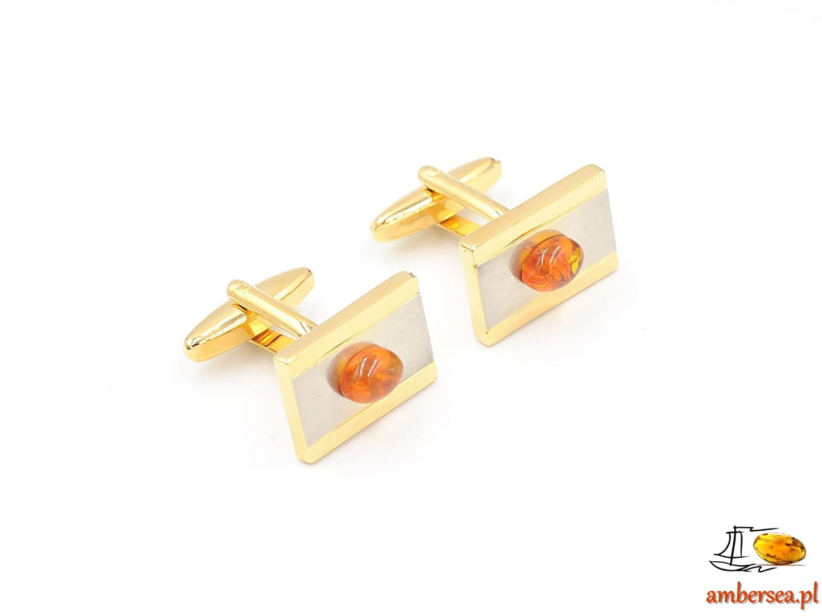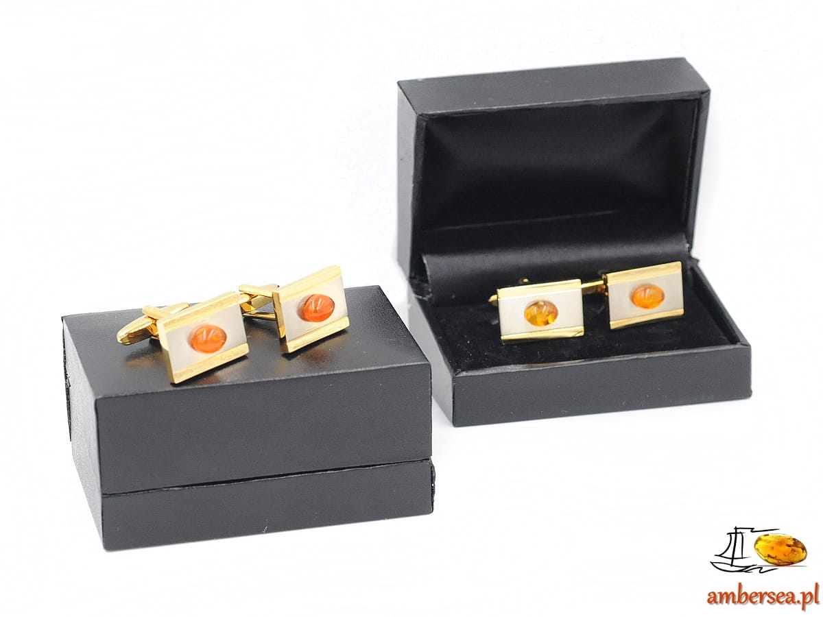 Spinki do mankietów z Bursztynem +Certyfikat srebrne złote bursztyn owal