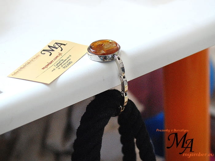 Wieszak Uchwyt na torebkę z Bursztynem 16216 + Cert Pomysł prezent bursztyn (1)