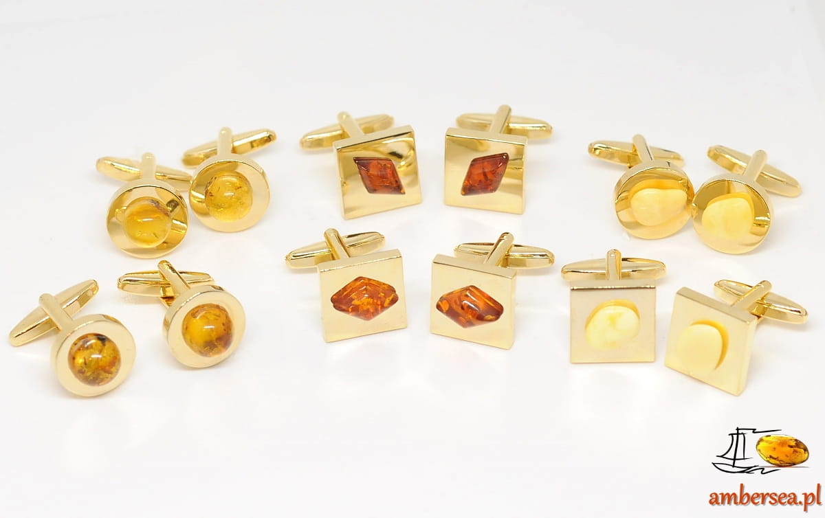 złote Spinki do mankietów z Bursztynem bursztyn spinki oz.1 (1)